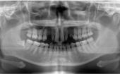 パノラマ撮影法パノラマレントゲンは、上下全ての歯・骨の状態などが、一枚のレントゲンで撮影できます。 |
